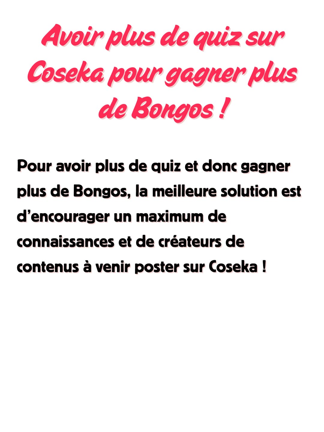 QUELLE EST L’UNE DES SOLUTIONS POUR AVOIR PLUS DE QUIZ POUR GAGNER PLUS DE BONGOS ?